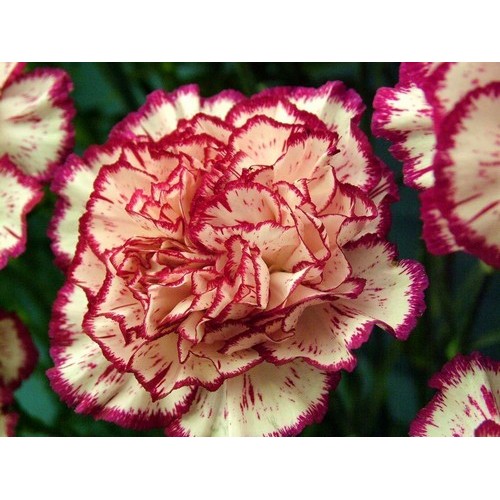 Carnation Double Striped is a popular cottage garden favourite. It is a half hardy annual variety that produces very pretty unusual double white flowers with Red tips and Red and Pink flecks. Ideal as a cut flower.