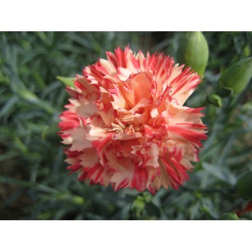 Carnation Orange Sherbet (Dianthus Caryophyllus) is a beautiful cottage garden variety.   A half hardy annual and a Chabaud type carnation.  It produces a mass of beautifully fragrant, Orange and Cream bi-colour double flowers on stems as long as 60cm.  Flowers from Summer into Autumn.   Ideal as a cut flower and for borders.