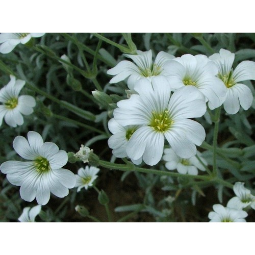 Cerastium Tomentosum (Snow in Summer) is a creeping, mat-forming perennial that grows quickly and is easy to grow. It will produce silvery white foilage all year round and in summer it produces beautiful dainty pure White flowers during May and June. Ideal for rockeries.