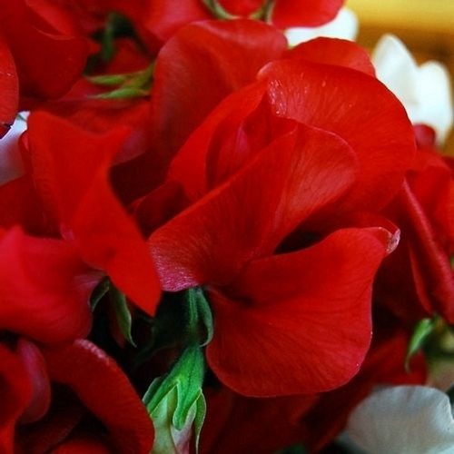 Sweet Pea Mammoth Scarlet is a beautiful variety that produces large Scarlet Red flowers on long stems. An excellent cut flower variety.